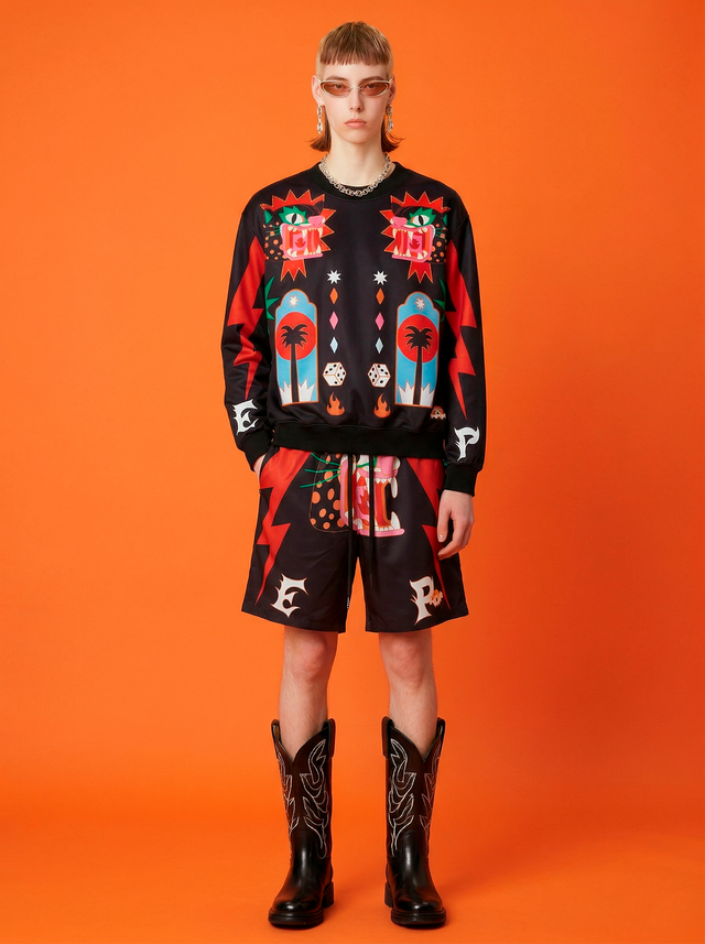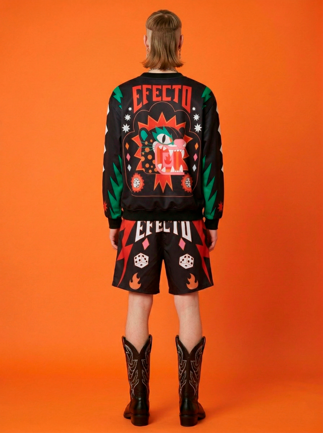 SWEATER de nylon de algodón de ajuste holgado manga larga. Estampado delantero, posterior y mangas. · Cuello redondo y puños tejidos · Estampación textil en delantero, posterior y mangas. Gramaje alto. Hecho en Colombia. "